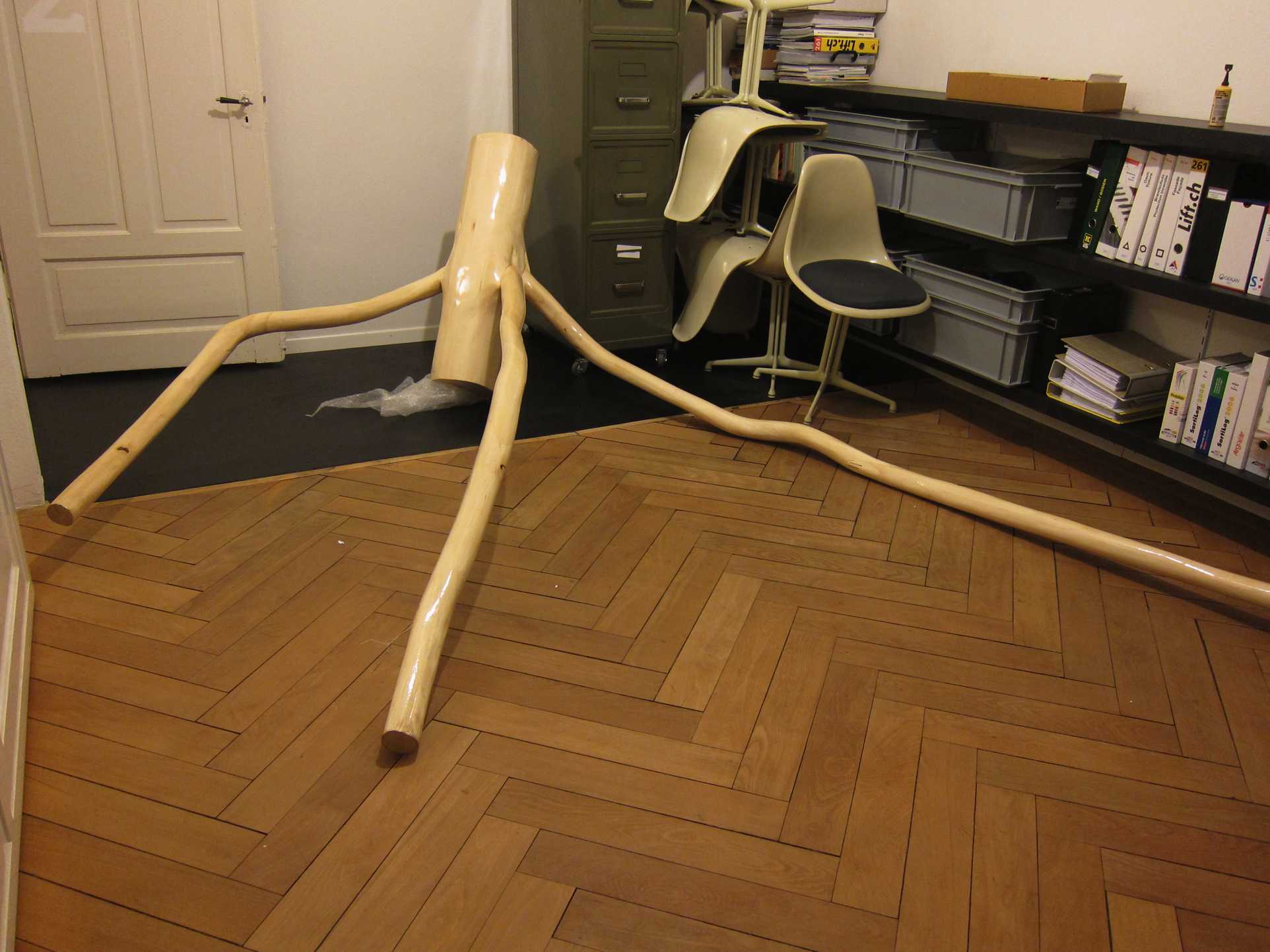 One out of five different models of those carefully arranged small wood branches was selected to be re-built in wood 10:1.