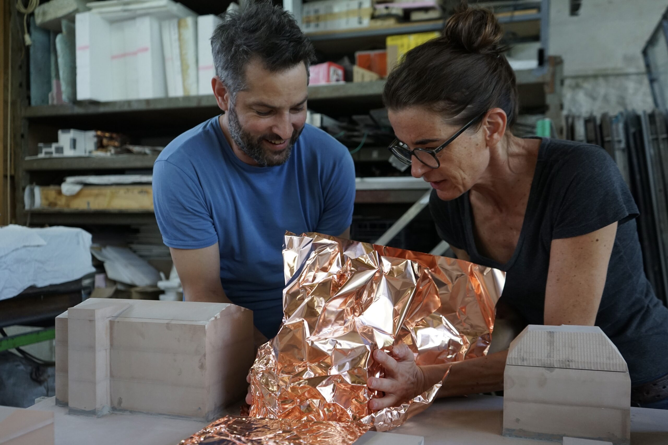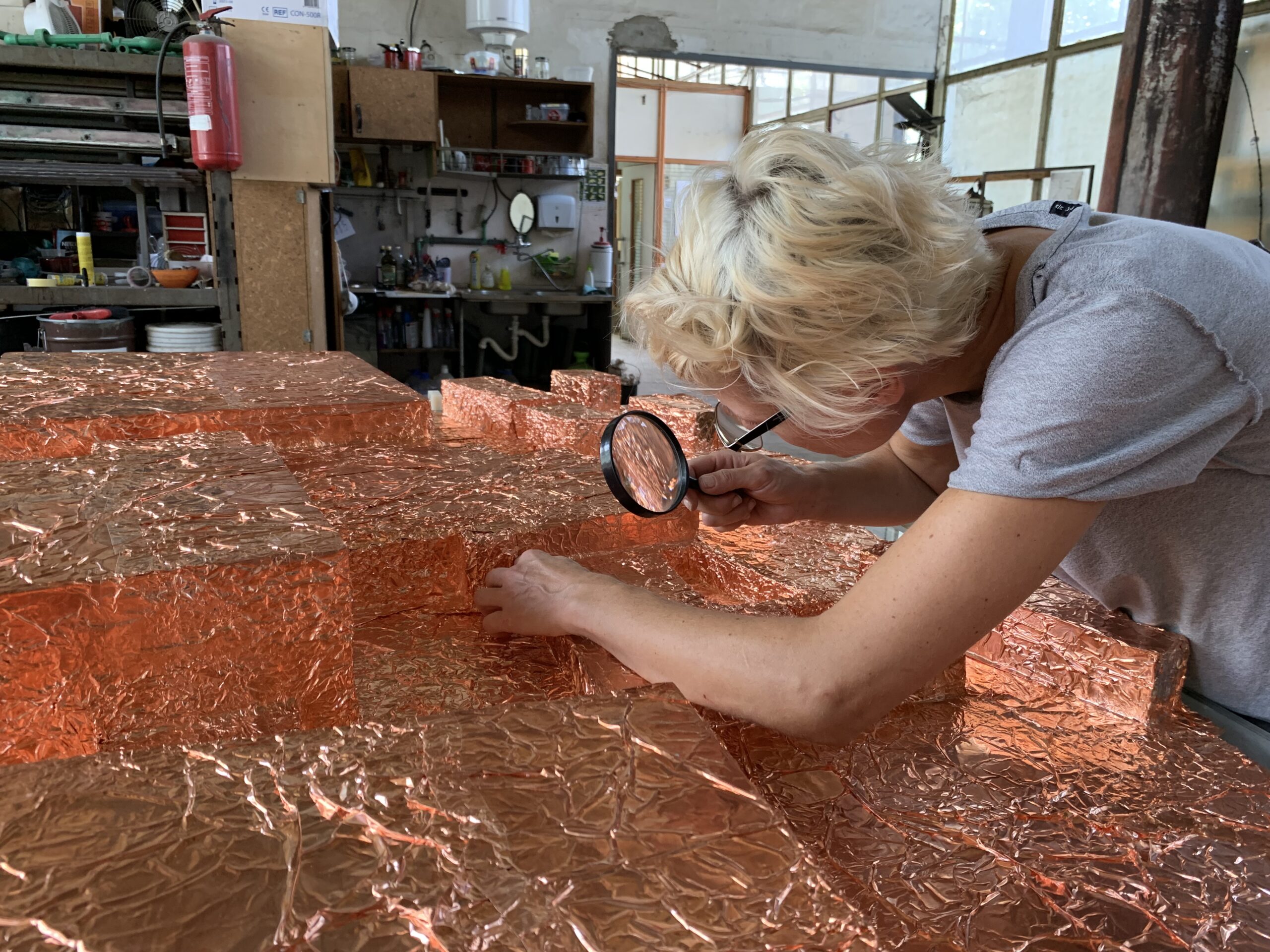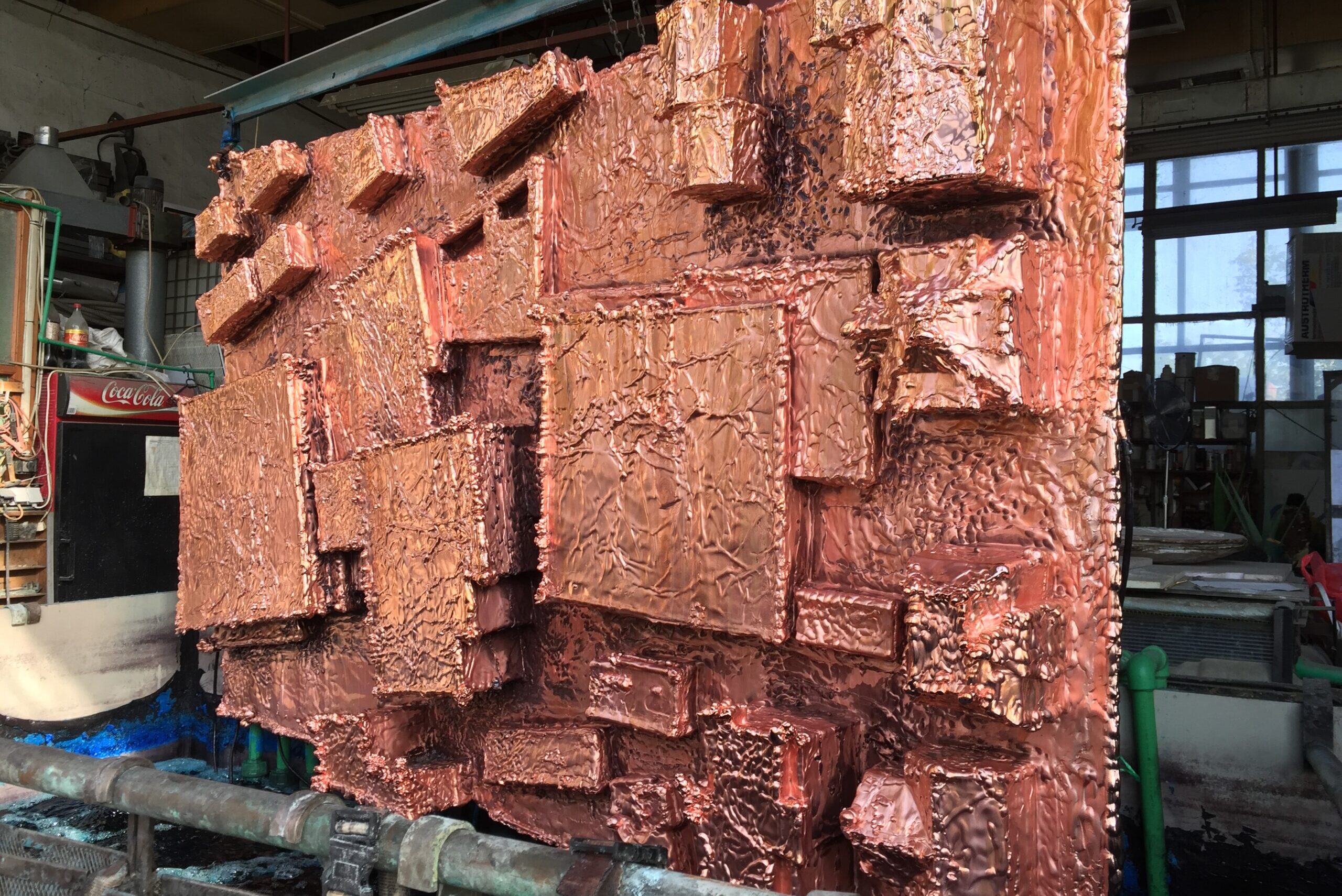 The model was then “pressed” into copper foil—a hands-on, bodily act mirroring her signature performative approach.