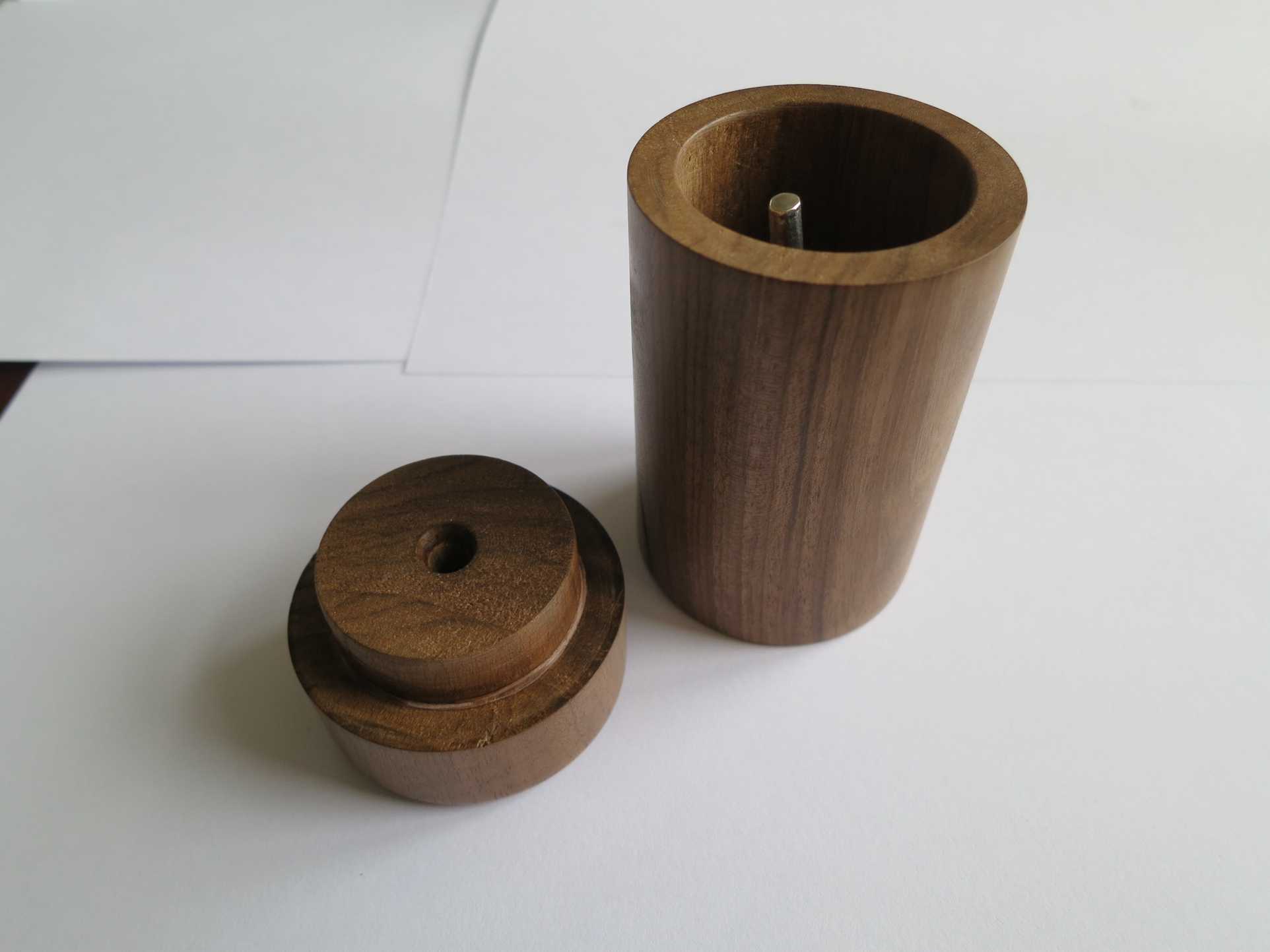 A personal pegtop in 925 silver and walnut wood.