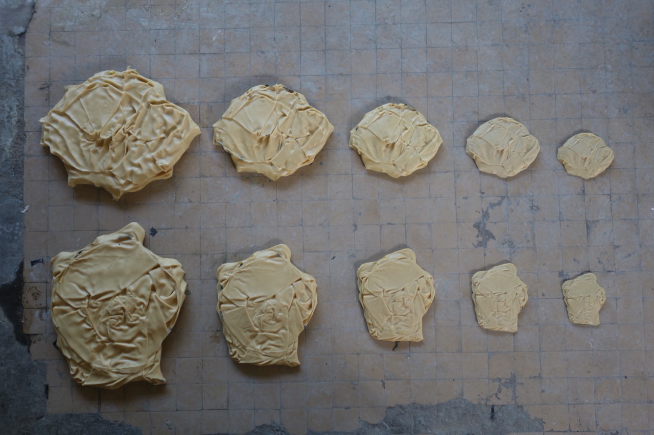 Two of the Airless toys where selected to be enlarged for 300% to 400%. After that they where electroformed in copper and realistically spray painted with the original design.