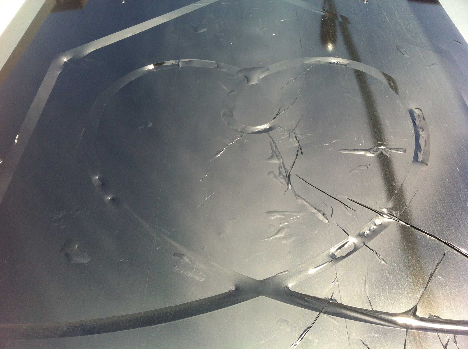 A “habitat” shop sign, covered with a black film.